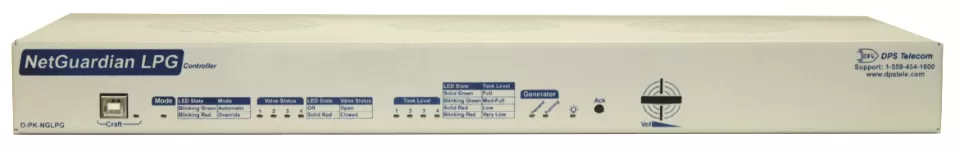 Automatic propane cycling has never been easier. The new NetGuardian LPG Controller allows you to easily and remotely manage up to 5 liquid propane tanks. This device allows you to cycle through tanks - whenever a tank is near empty, the valve is automatically closed and the next tank valve is automatically opened. By using the web interface, automatic cycling can be overridden and the user can take direct control. The front panel features visual LED displays for each tank showing valve status (open/close) and four threshold levels for propane level.