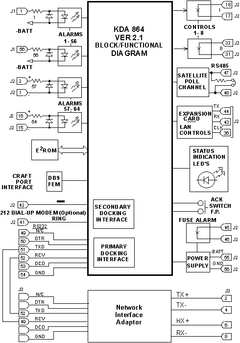 See functional schematic of the KDA 864-E2 Alarm Remote.
